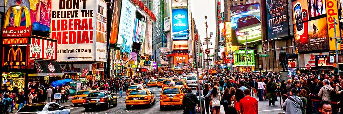 En Times Square se agolpan bares, restaurantes, teatros, museos y ambiente, mucho ambiente. Al caer la noche, las luces de Times Square lo iluminan todo, y no hay viajero ni neoyorkino que no se rinda al encanto de la plaza más famosa de la ciudad.